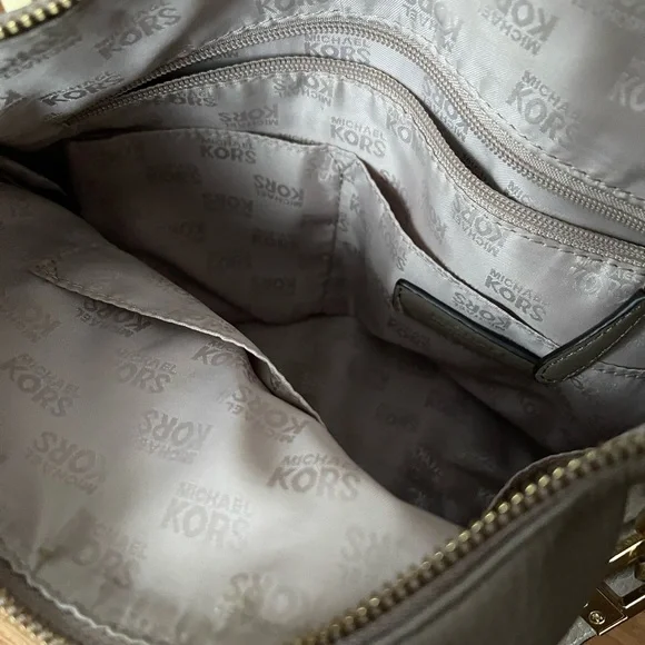Michael Kors Pebble Taupe Leather Purse with Gold DetailsCrossbody bag with the option to remove the additional strap and style it as a handbag or shoulder bag. Love all the...