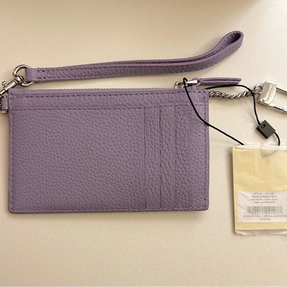 New with tags. Dust bag included. Original price 1254 exterior card slots, 1 exterior slip pockets, 1 zip pocket, 1 chain with keyringColor: Lavender Hardware silverTop zip 5in L x 1in W x 3in H