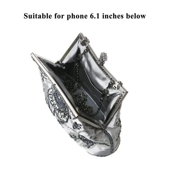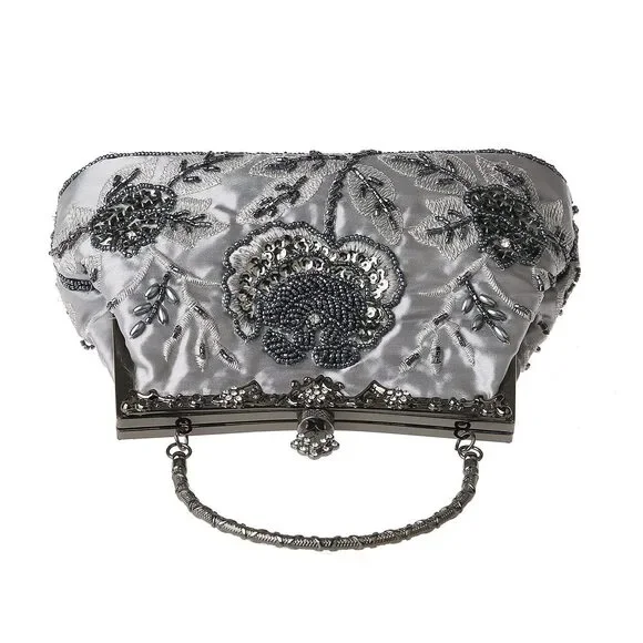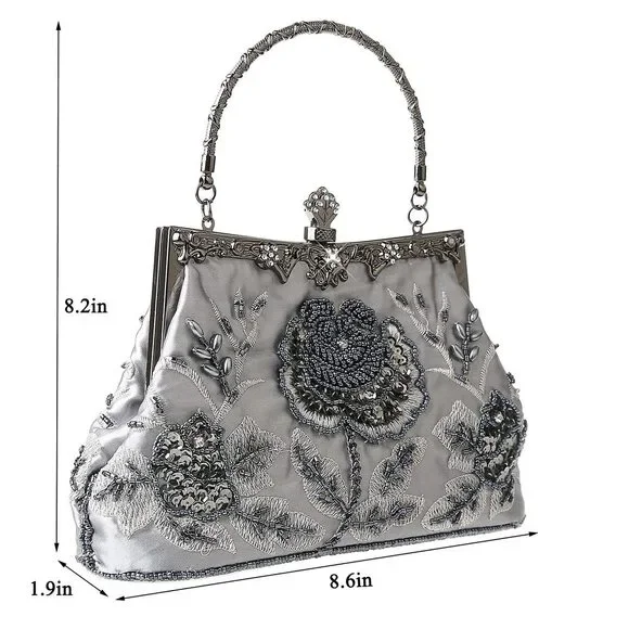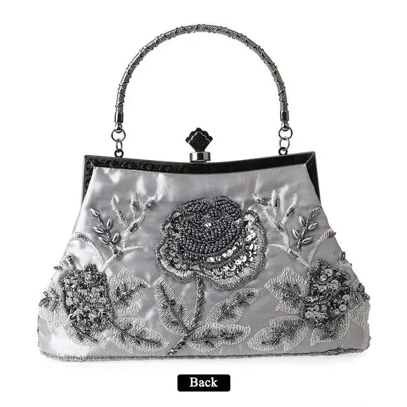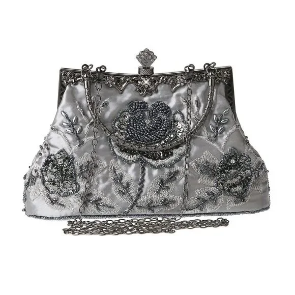 Vintage Floral Beaded Rhinestone Clutch - Bridal Wedding Party Bag