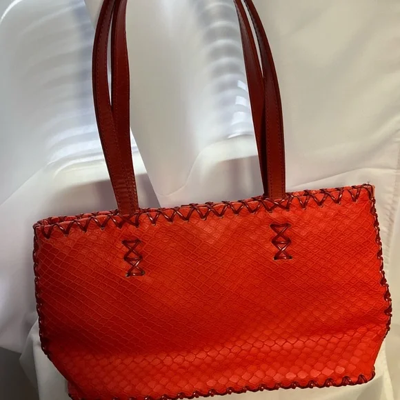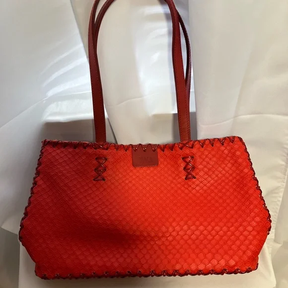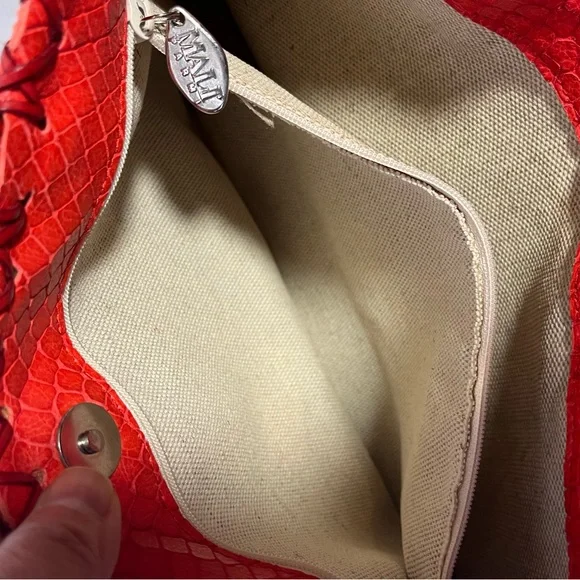 Nearly new, MALIPARMI red leather shoulder bag Croc pattern with contrast stitching detailInside zipper pocket Excellent condition
