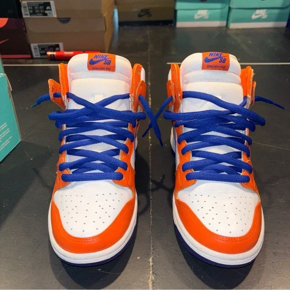 PERFEFT CONDITIONS ONLY USED S COUOLE TIMESThe Nike SB Dunk High Danny Supa in size 8.5 is a stylish high top sneaker designed for men. Featuring a vibrant color scheme of Orange Blaze/Hyper Blue-White, this athletic shoe is part of the popular Nike Dunk product line. With a unique nickname and release year of 2017, this shoe combines fashion and functionality for the modern sneaker enthusiast.