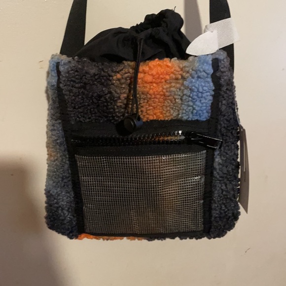 brand new tie dye sherpa adjustable crossbody bags.1 outer zip pocket. Drawstring closure with a pocket on the inside.