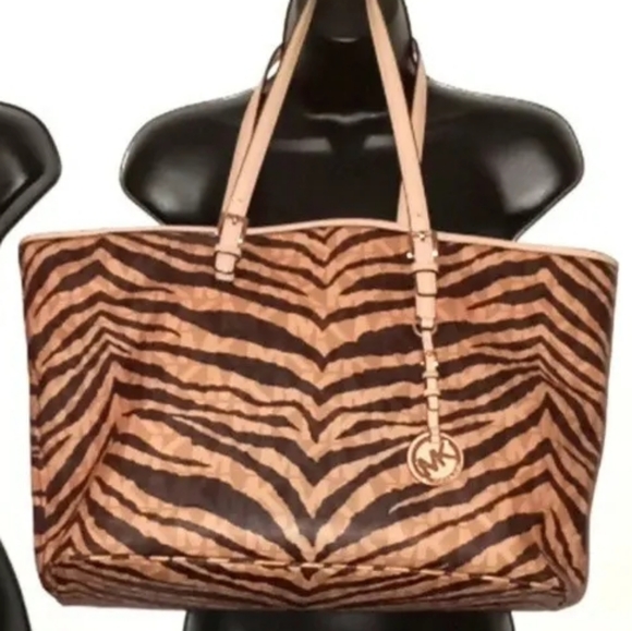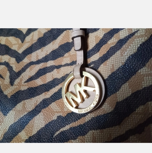 Michael Kors animal print tote small discoloration inside lining and outside the Dimensions (approx.): 18 (L at Top) x 15 (L at Bottom)x 11.5 (H) x 6.5 (D) in…. Michael Kors EXTRA EXTRA LARGE PADDED LAPTOP SAFE TIGER TRAVEL TOTE. Mk CharmADJUSTABLE LEATHER STRAPS MK SIGNATURE LININGPADDES INNER POCKETSZIPPERED LARGE DIVIDERNEW WITH DEFECTLINING DISCOLORATION 1MM PEN MARKGREAT FOR TRAVEL!!!