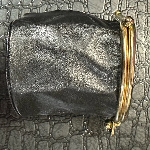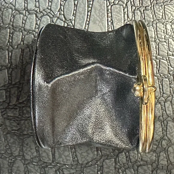 **Authentic~Vintage~Givenchy** Black and Gold Collapsible Coin Purse Kiss Lock