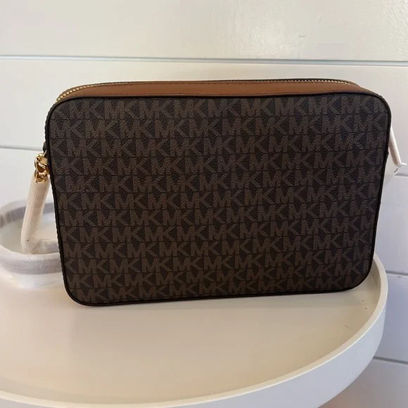NWT MICHAEL KORS JET SET LG EW CROSSBODY IN BROWN