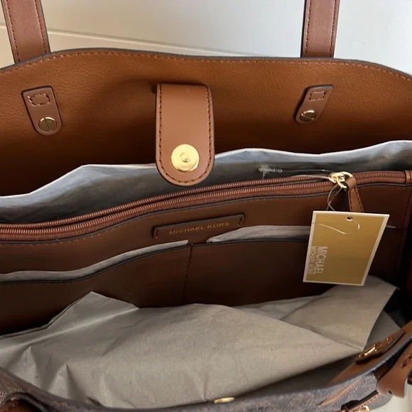 NWT MICHAEL KORS MEL BROWN LUGGAGE LARGE TOTE