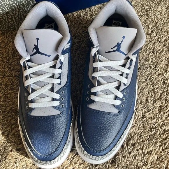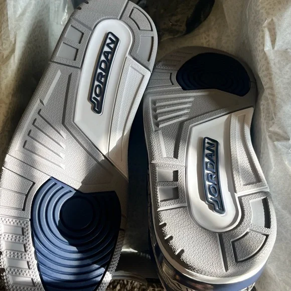 Never worn. Elevate your look with these Jordan sneakers. Bold navy and crisp white design. Ideal for casual wear.