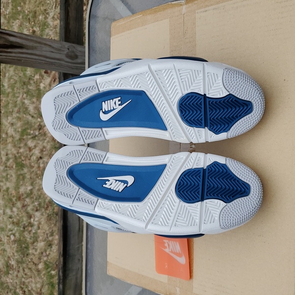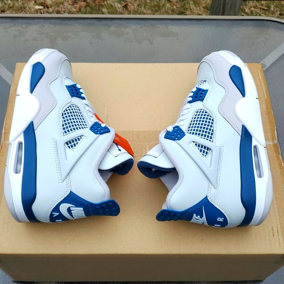 Condition Is New100% AUTHENTICJordan 4 Military Blue Size 7FV5029 141Off White/ Military BlueStylish white and blue sneakers with a sleek design. Perfect for casual wear.ON HAND READY TO SHIP