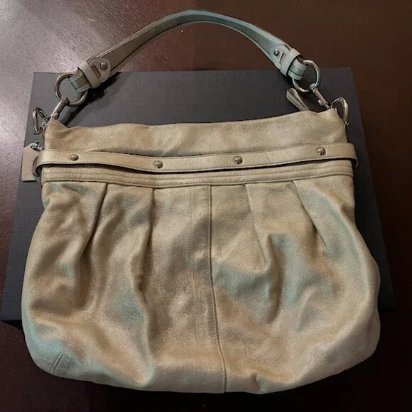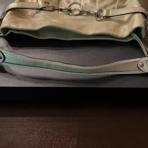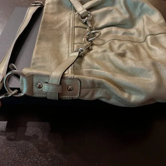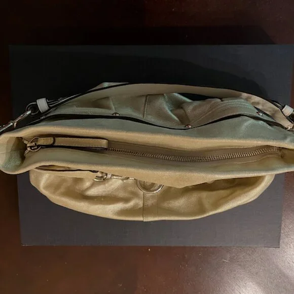 Gorgeous everyday hobo style bag with soft and luxurious leather. Silver hardware and zipped closure. Pristine on the inside. Slight color transfer on the back.