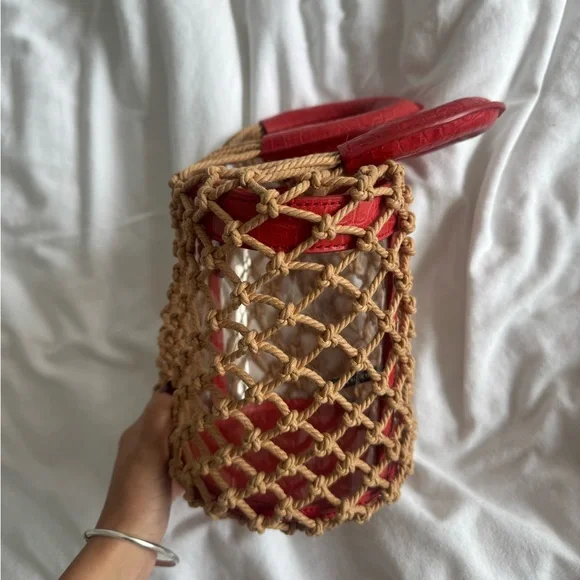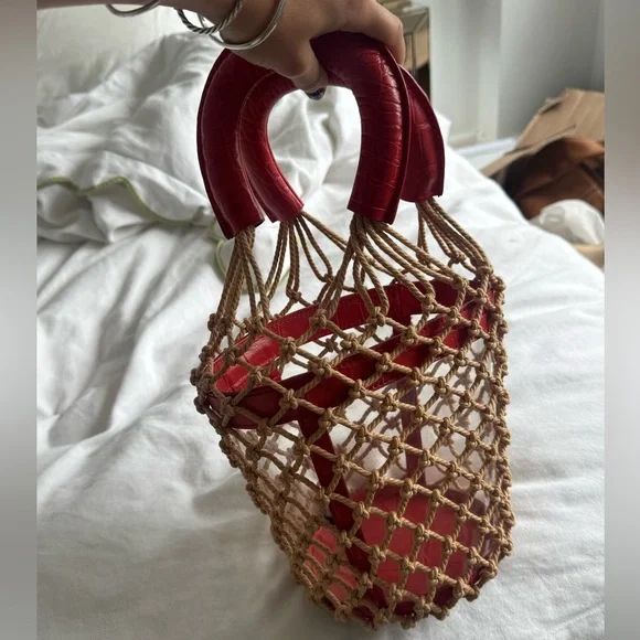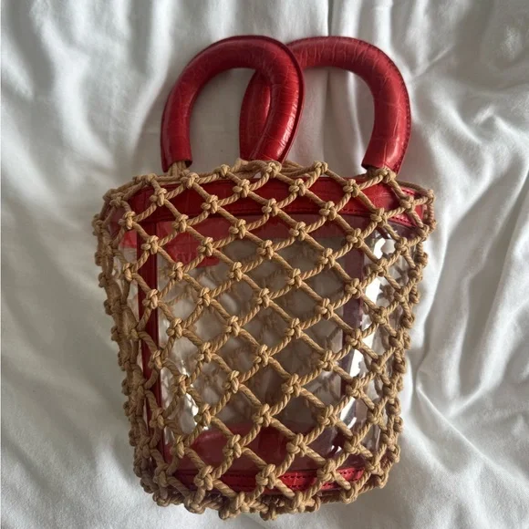 Staud red leather net bucket summer bagSuper cute, just selling my bag collection and don´t have room for her:(