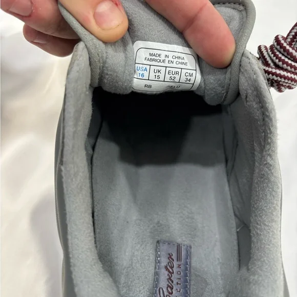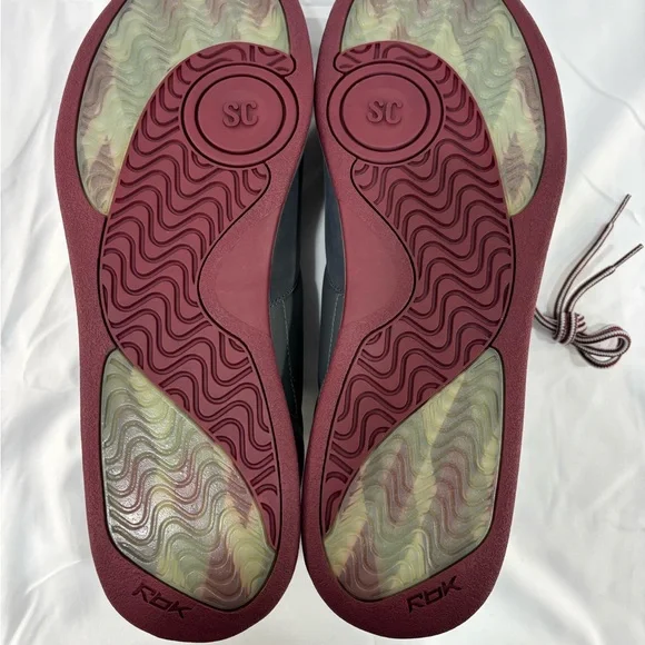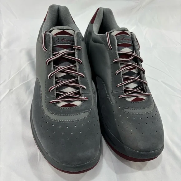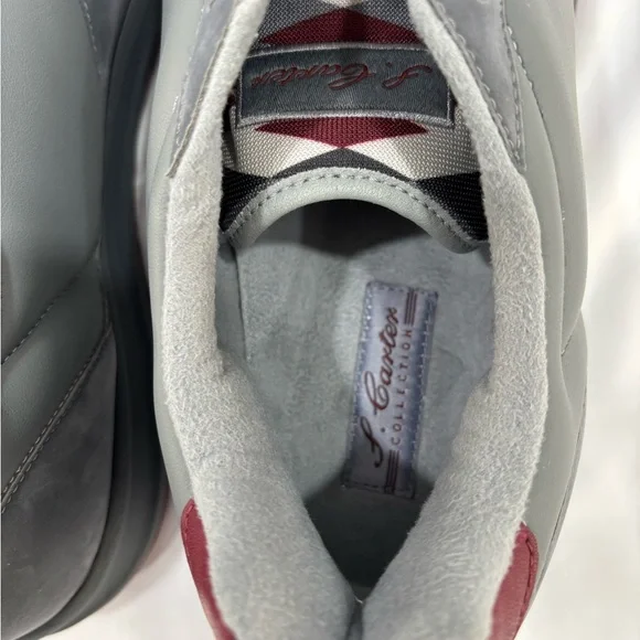 For sneakerheads and Jay-Z fans, this rare pair of Reebok S. Carter sneakers in gray with maroon accents is a true collector’s gem from the early 2000s. Launched in 2003 as part of Reebok’s groundbreaking collaboration with Shawn “Jay-Z” Carter, the S. Carter line became the brand’s fastest-selling shoe, with limited runs of just 5,000 pairs per drop. This particular colorway, featuring a suede-like gray upper, maroon detailing on the tongue, heel, and midsole, and a diamond-patterned tongue, is an uncommon find compared to the more widely released white, green, and red versions. With “S. Carter” embroidered on the tongue and “RBK” on the heel, these sneakers embody the perfect fusion of hip-hop culture and sportswear, capturing Jay-Z’s influence during a pivotal era marked by The Black Album and his rise as a cultural icon.In exceptional condition for their age, these size US 16 sneakers show minimal wear, with pristine suede, vibrant maroon accents, and intact soles, making them ideal for both wearing and displaying. The S. Carter line’s exclusivity and historical significance ensure its value will only grow, especially as vintage Reebok collaborations become increasingly sought after. Whether you’re a collector looking to invest, a Jay-Z fan wanting a piece of his legacy, or a style enthusiast drawn to their timeless design, these sneakers are a must-have. Don’t miss your chance to own a piece of sneaker history that’s as rare as it is iconic!
