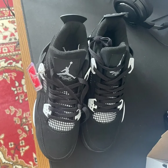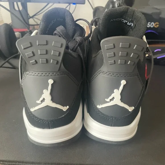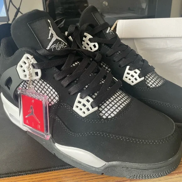 Stylish black and white sneakers with iconic Air logo. Perfect for casual wear.