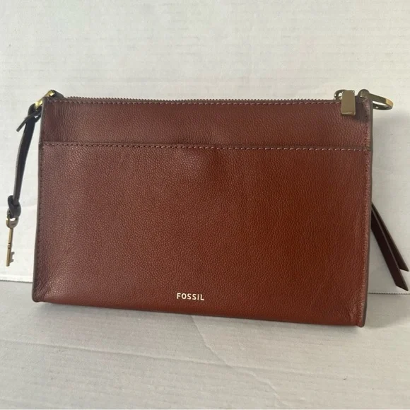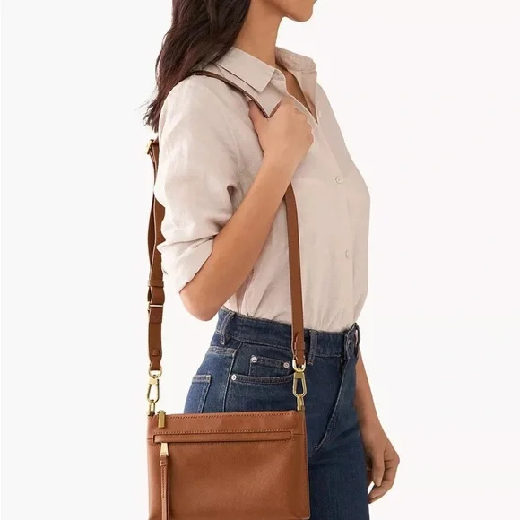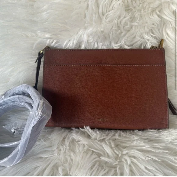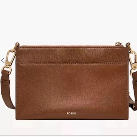 Fossil Taryn Leather Crossbody Bag New with tags Taryn is an everyday style in a perfect size. The simple styling details make it versatile to wear with both casual and more refined looks. It features an adjustable crossbody strap and has slim exterior function with its front and back slide pockets.Product FeaturesMaterial - leather, lining - polyesterSmall sized bag, 9 1/2" W x 7 1/4" H x 2 1/4" D24" strap when fully extendedZipper closureExterior details - 1 back slide pocket, 1 front slide pocket, gold-tone hardwareInterior details - 1 slide pocket, 1 zipper pocketWeight - 0.90 lbs1-year limited manufacturer warranty from defectsSpot CleanImported Questions? Leave a comment below!