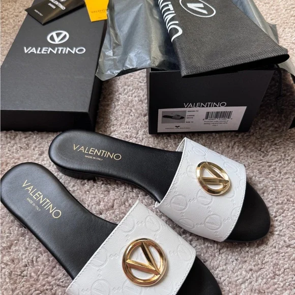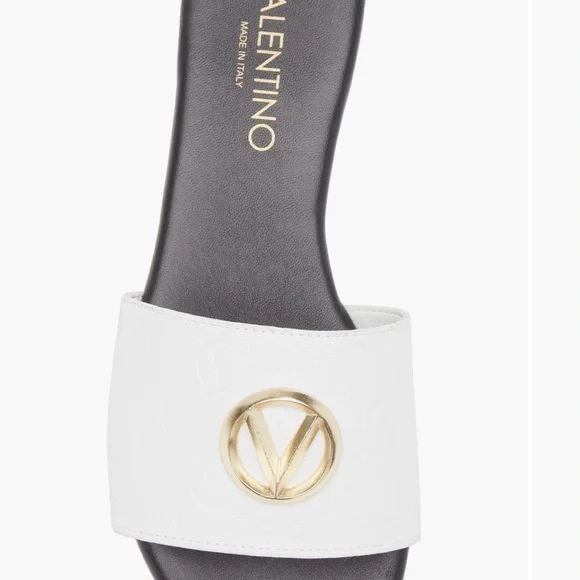 Valentino By Mario Valentino White and Black Slide Sandals
