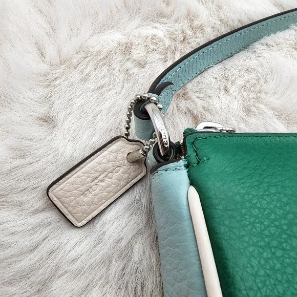 Coach NWT Colorblock green,‎ blue, & white With Horse And Carriage shoulder bag