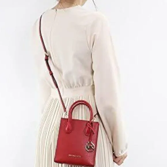 NWT Michael Kors MERCER XS NS SHOPPER XBODY LEATHER 35S1GM9T0L/35T1GM9C0I CHILI