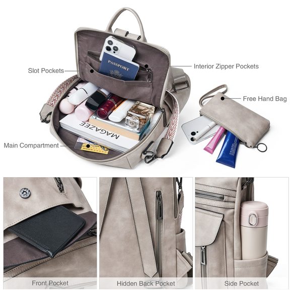 fashion-backpacks; Shrrie Backpack Purse for Women + Clear Stadium Bag; Leather