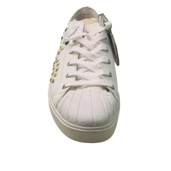 These Evisu Leather shoes in white and gold are a stylish choice for any outfit. The perfect combination of colors for a trendy look. Never been worn but it was in a showroom.