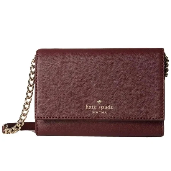 This elegant Kate Spade crossbody bag showcases a deep purple hue, enhanced by a structured design and gold-tone chain accents. Its minimalist aesthetic and smooth leather finish...
