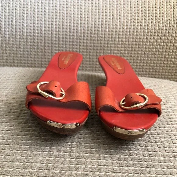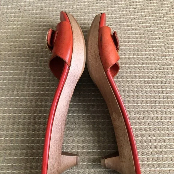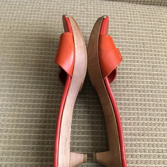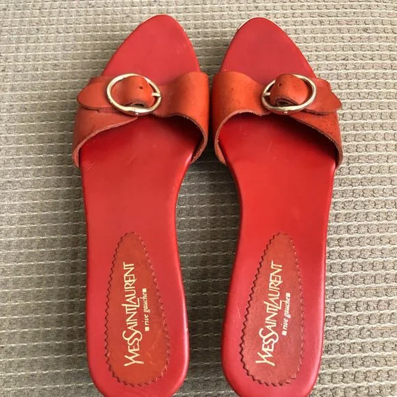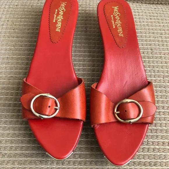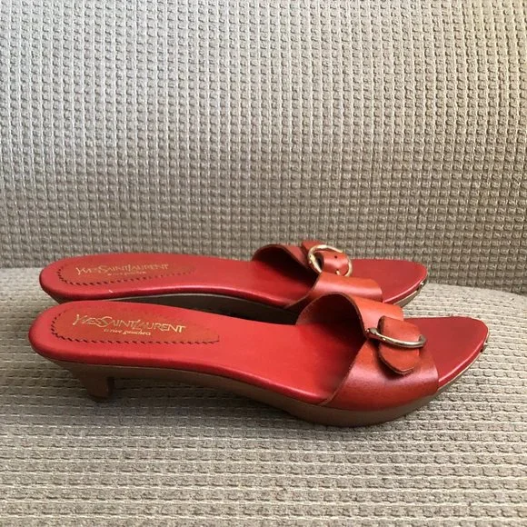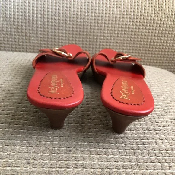 Yves Saint Laurent YSL Orange Kitten Heel Mules