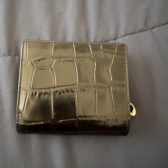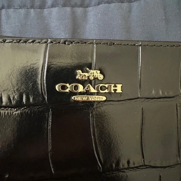 Elegant black croc-embossed wallet by Coach. Features gold-tone hardware.