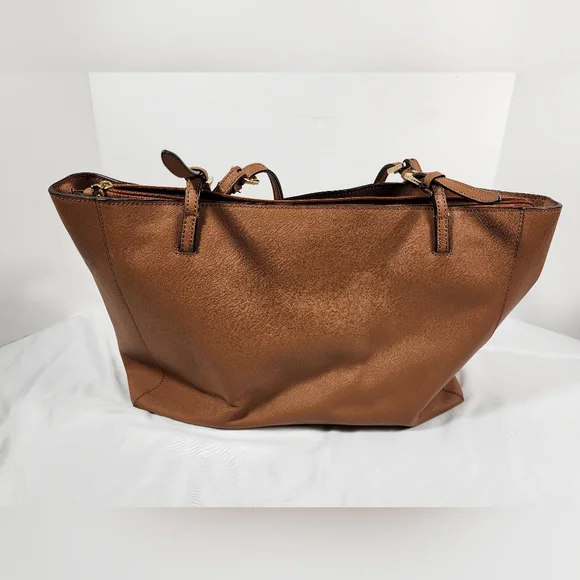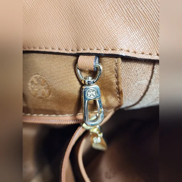 Tory Burch Emerson Canvas Leather Tote Caramel Brown Large Bag