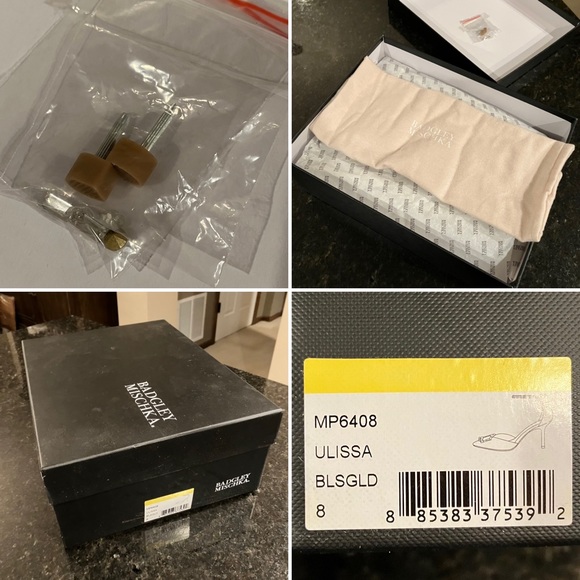 New Badgley Mischka Ulissa Embellished d´Orsay PumpColor: Blush GoldSize: 8Details:These fashionable pumps with an embellished ankle loop are adorned with an embellished buckleTextile upperPointed toeBack zip closure92.65mm heel (approx) ... approx 3.5 inch heelAdjustable ankle strap with buckle closureLeather liningLeather soleCondition: Brand new, never used, no signs of any wear nor any problem areas to note.