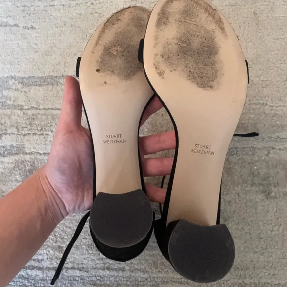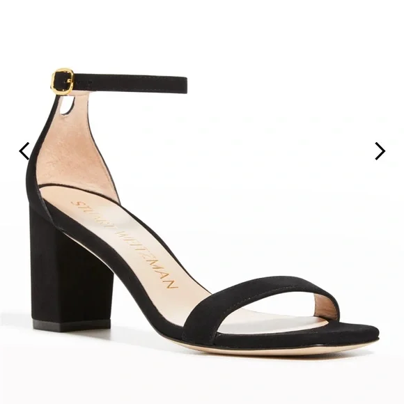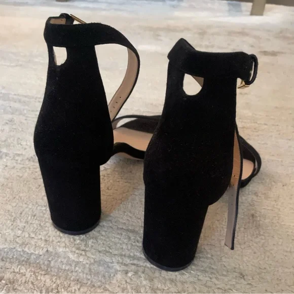 Stuart Weitzman Nudistcurve Black Suede Block-heel Sandals