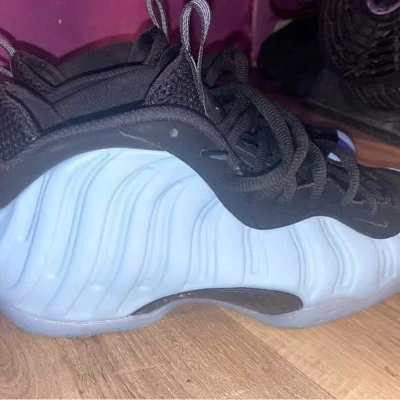 Stylish Nike sneakers. Black upper with light blue accents. Comfortable and trendy. Wore one time