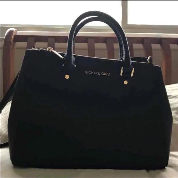Michael kors Selma purse in black with gold detailing. Used once practically new!