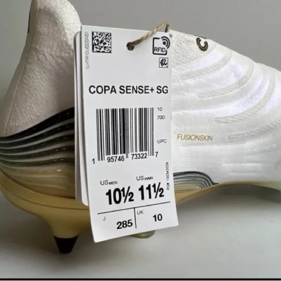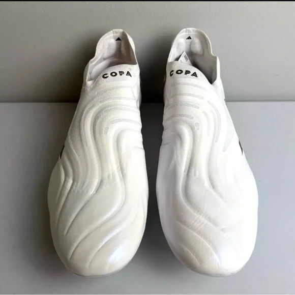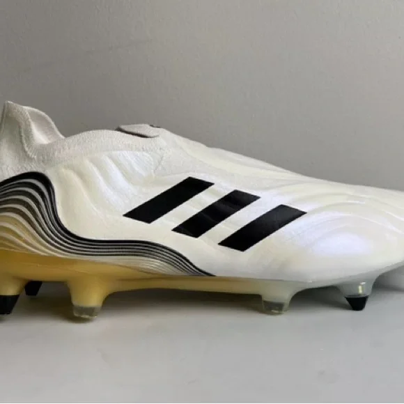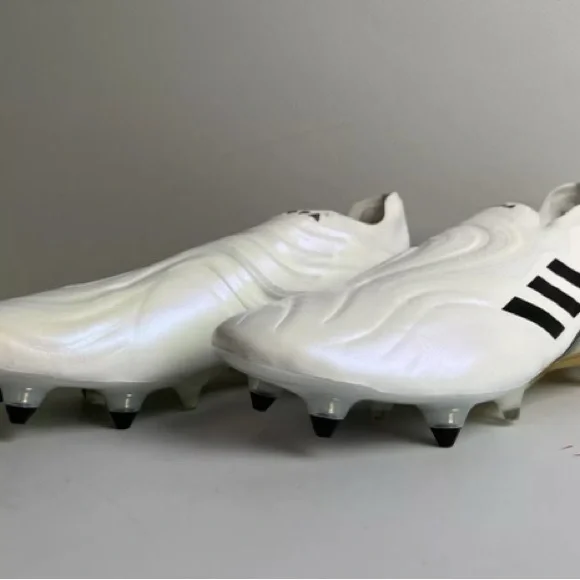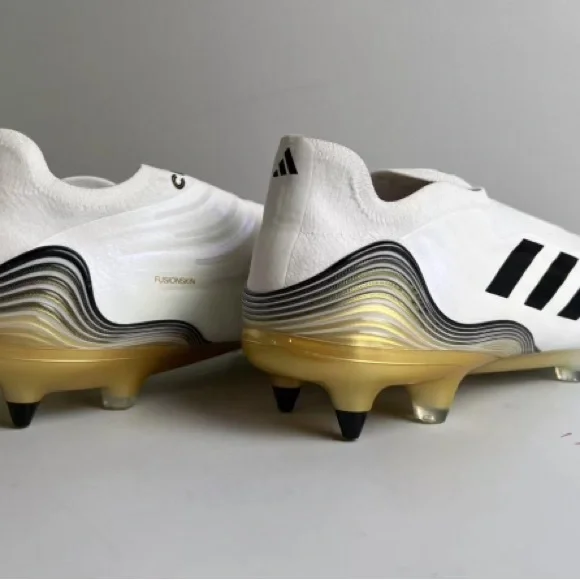 Elevate your soccer game with these Adidas Copa Sense Soft Ground Cleats in White Pearl Gold. Designed for the ultimate comfort and performance, these boots feature a soft soccer cleat soleplate with a medium width, perfect for players of all levels. The leather edition product line ensures durability and style, while the white and gold colorway adds a touch of elegance to your gear.With a size of 10.5, these boots are perfect for men who want to make a statement on the field. The featured refinements of SOFT SOCCER CLEATS SG make these boots a must-have for any soccer enthusiast. Don´t miss out on the opportunity to own these high-quality boots from Adidas.