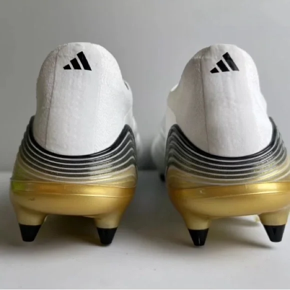 Elevate your soccer game with these Adidas Copa Sense Soft Ground Cleats in White Pearl Gold. Designed for the ultimate comfort and performance, these boots feature a soft soccer...