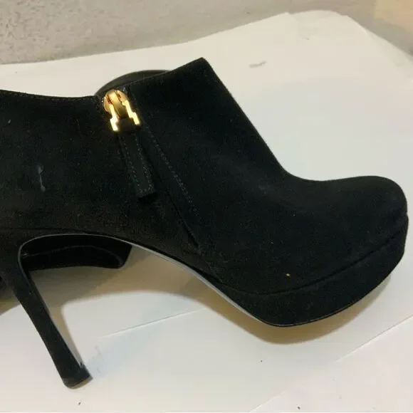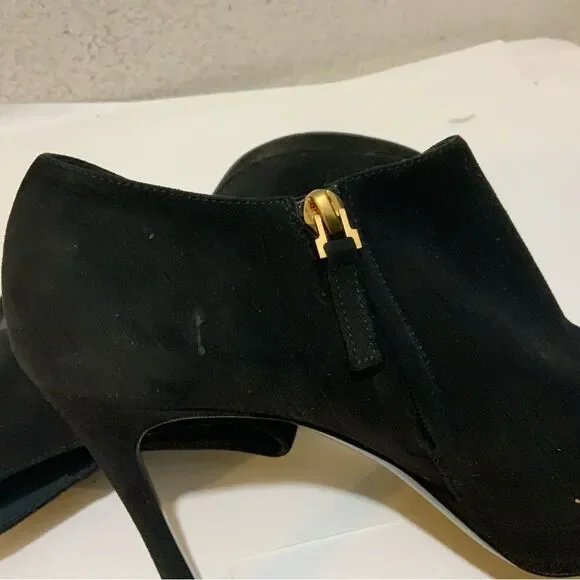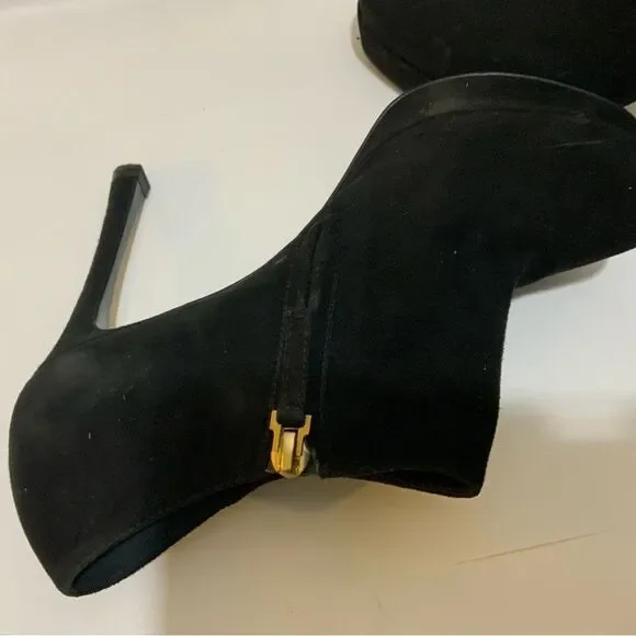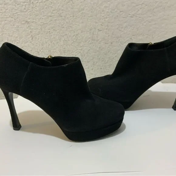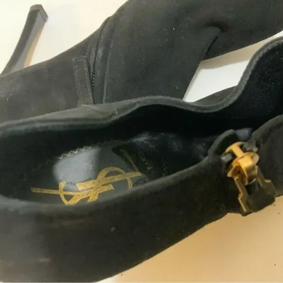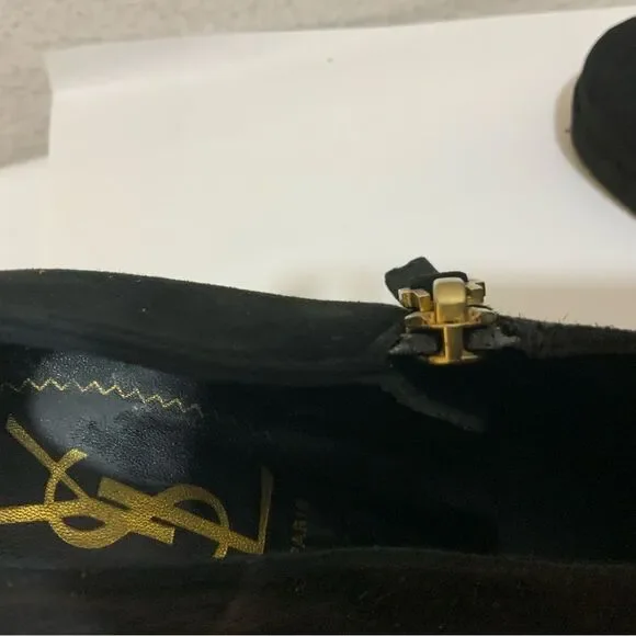 Yves Saint Laurent Paris Black Suede zip Booties Size 37.5