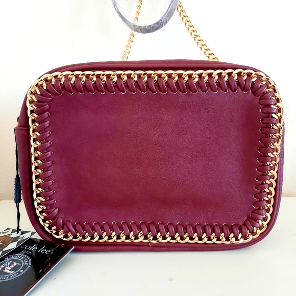 NEW WITH TAGS, NICOLE LEE´S ADORABLE CROSSBODY/SHOULDER BAG FROM THE, "GIRLS NIGHT OUT COLLECTION ". HAS GOLD EMBELLISHED CHAIN LINK STRAP AND DESIGN. RARE FIND!