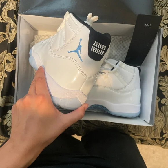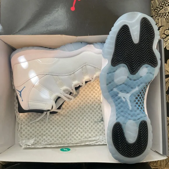 AIR JORDAN 11 RETRO WHITE/LEGEND BLUE-BLACK BLANC/NOIR/BLEUCOLUMBIEMen size 8