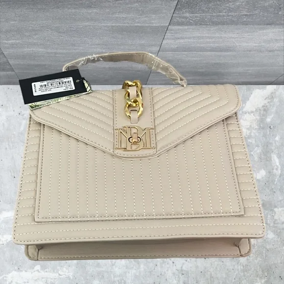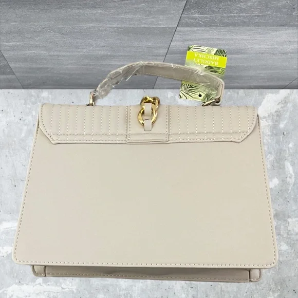 NWT BADGLEY MISCHKA BEIGE BIG DIAMOND QUILTED TOTE WITH FRONT LOCK