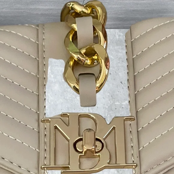 NWT BADGLEY MISCHKA BEIGE BIG DIAMOND QUILTED TOTE WITH FRONT LOCK This adorable Tote is perfect for any handbag collection.The elegant design and unique materials are quite the combination.Crossbody strap, multiple pockets inside, turn lock closure, gold hardwareVegan leatherMeasures: 11"W x 9"H x 6" D