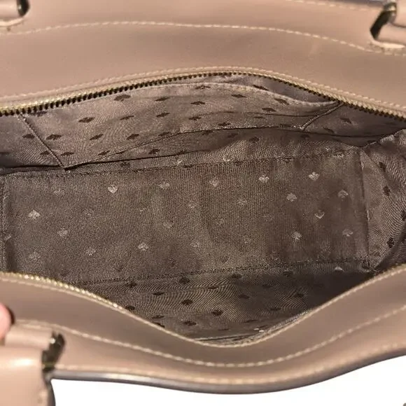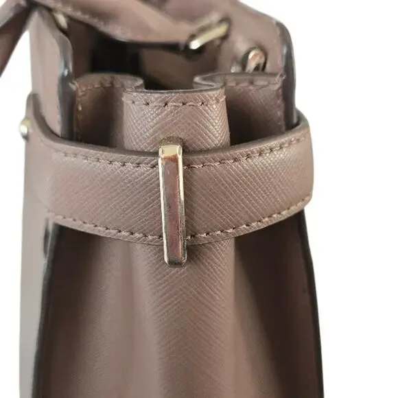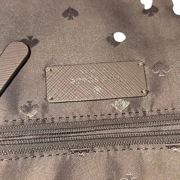 10.87" w x 8.62" h X 5" d♠ handle drop: 5.5"♠ detachable shoulder strap: 22"♠ saffiano leather♠ ksny metal pinmount with spade logo♠ two way spade jacquard lining♠ drop in top zip closure♠ interior: 1 slip pocket, 1 zip pocket♠ exterior: 1 front & 1 rear slip pockets♠ dust bag not includedBag is in excellent used condition. There is some wear on the metal fastenings, and some spots on the bottom of bag. Imperfections are all noted in the photos. Please take note of any flaws. The shoulder/crossbody strap is included, I just forgot about it when I was photographing. It doesn´t have any flaws.