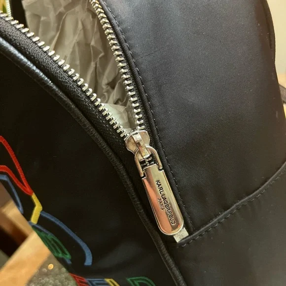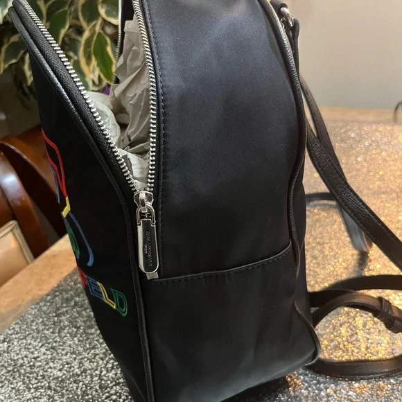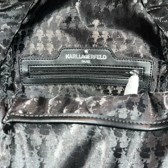 KARL LAGERFELD Paris Backpack brand new 2 inside pockets one with zipper & hideaway pocket on backing. Very Nice Quality.