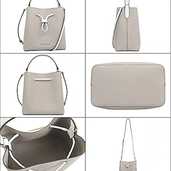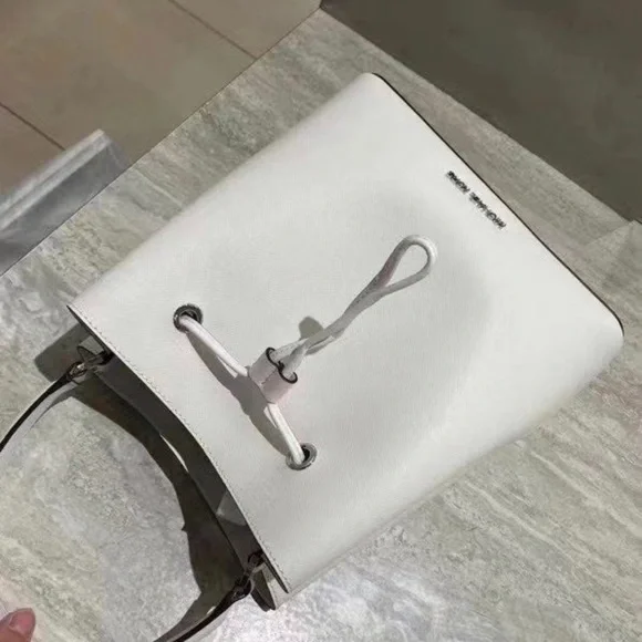 Michael Kors Suri Large Bucket Crossbody In White Color100% Authentic Bag Details: Material: LeatherSilver hardware does have a pen mark in the bottom 10”L X 10.5”H X...