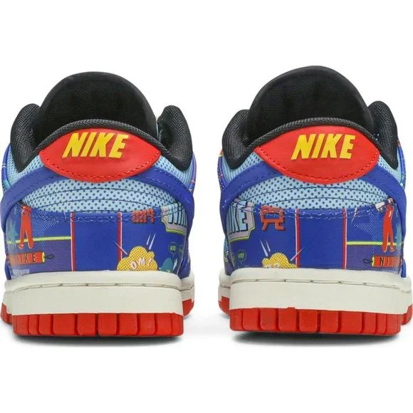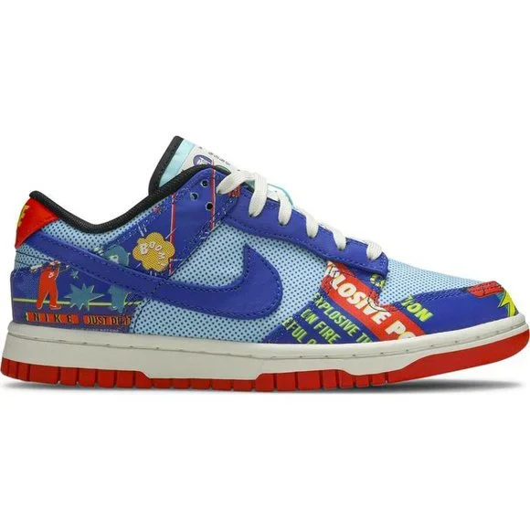 Celebrating Chinese New Year, the Nike women?s Dunk Low ?Firecracker? features a colorful exterior that reveals hidden layers, all based around the Sneaker, New?s explosive theme. The Sneaker, New?s mismatched tongue tags act as warning labels, while the cartoon graphics on the royal blue overlays replicate the look of firecracker wrapping paper. The entirety of the Sneaker, New?s outer layer can be worn away to reveal bright red coloring representing the firecracker casing. Underneath the red surface, a tertiary layer is rendered in black and grey, denoting the gunpowder residue from a spent firecracker.DS OG ALL - SKU A1220