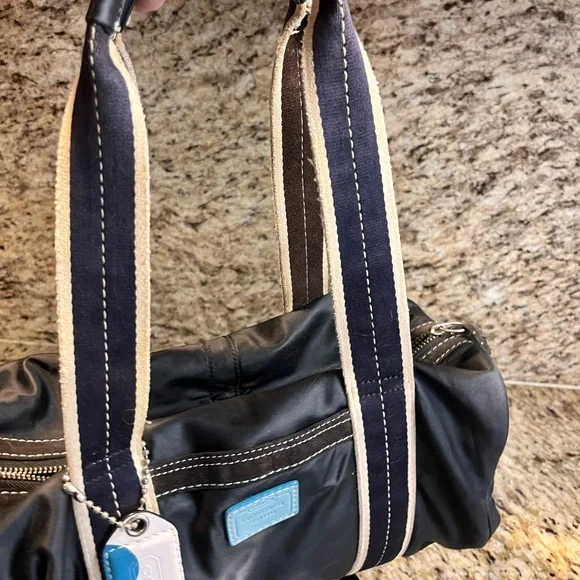 EUC Coach Hampton Duffel Shoulder Bag black nylon and suede