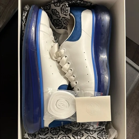 Step out in style with these sleek white and blue men´s sneakers. Perfect for any casual outing or anything professional, very comfortable and also gives you some height as well.