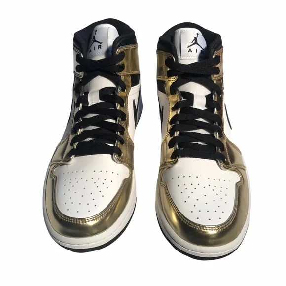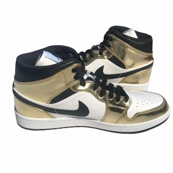 All over Gold Jordan 1 mid Shiny gold leather Brand new never worn Original boxSize 9:5 mens