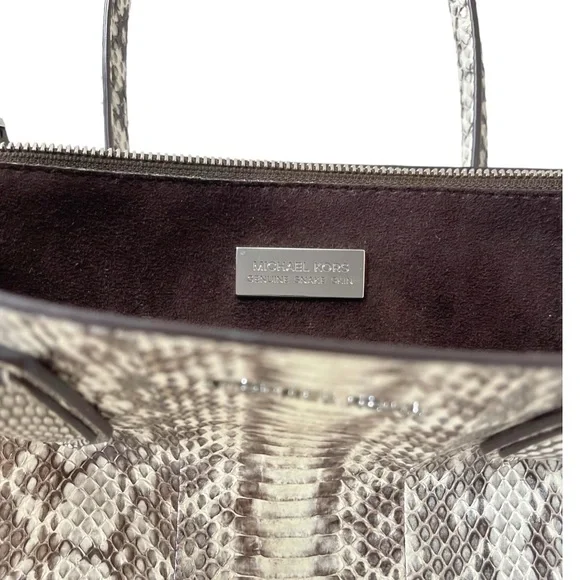 Gently used. Good condition. Small Tear At The Bottom Of Tote - Please See Pictures. >Michael Kors Genuine Snake Skin Tote>Dust Bag Included>Ideal For Fall Season