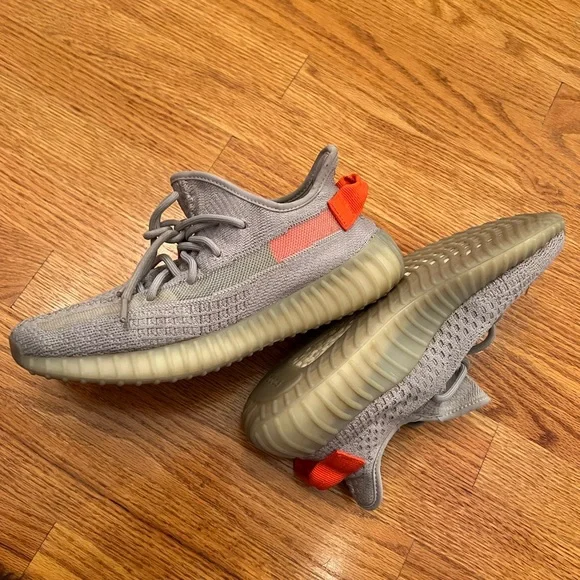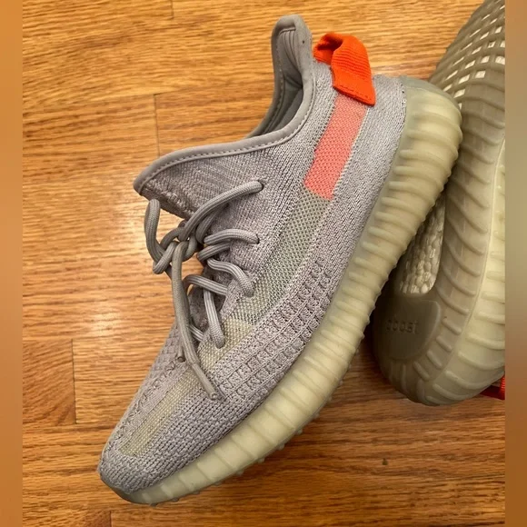 Questions? Leave a comment below!The adidas Yeezy Boost 350 V2 "Tail Light" combines elements of different Yeezy 350 V2 designs into one for a new take released in Winter2020. Once proclaiming "Yeezys for all," Kanye West has indeed lived up to his word by continuing to release a steady stream of Yeezy Boost 350 V2s.Taking cues from the "Beluga" and "True Form" colorways, the upper is outfitted in grey Primeknit with a the translucent side stripes given an orange backing near the ankle.BVery good condion