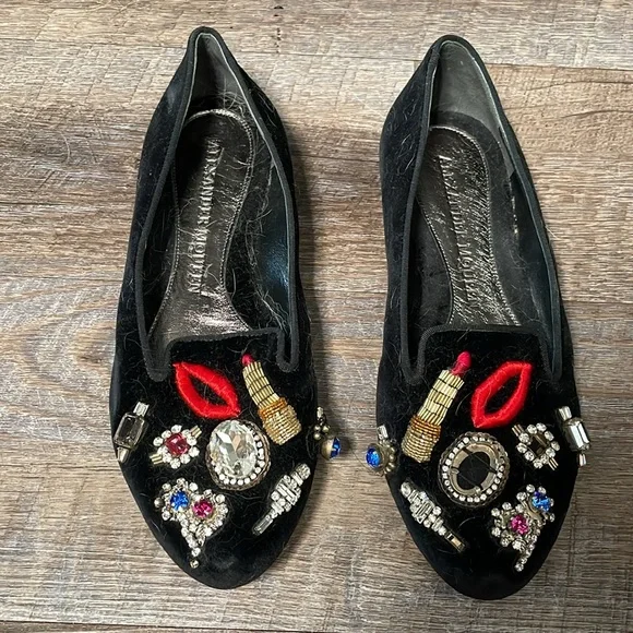 Alexander McQueen Crystal Velvet Loafers size 37 missing stones.beading needs repaired in one spot