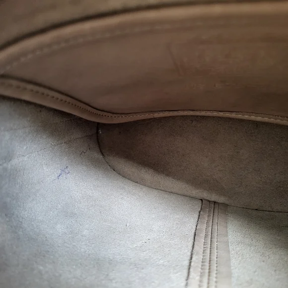 Vintage Coach Smooth Leather Bucket Bag in Taupe675-4831Well cared for vintage coach made in the late 70s/early 80sIt´s large enough for your daily needs with top closure zipper, an inside drop pocket and a single outside that wraps halfway around the bag for items such as glasses, keys, receipts.Internal/Exterior PocketsComes with 41" adjustable strapNormal wearPen marks on the inside as picturedFreshly cleaned and conditioned4075