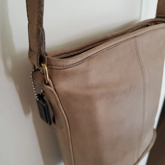 Vintage Coach Smooth Leather Bucket Bag in Taupe675-4831Well cared for vintage coach made in the late 70s/early 80sIt´s large enough for your daily needs with top closure...