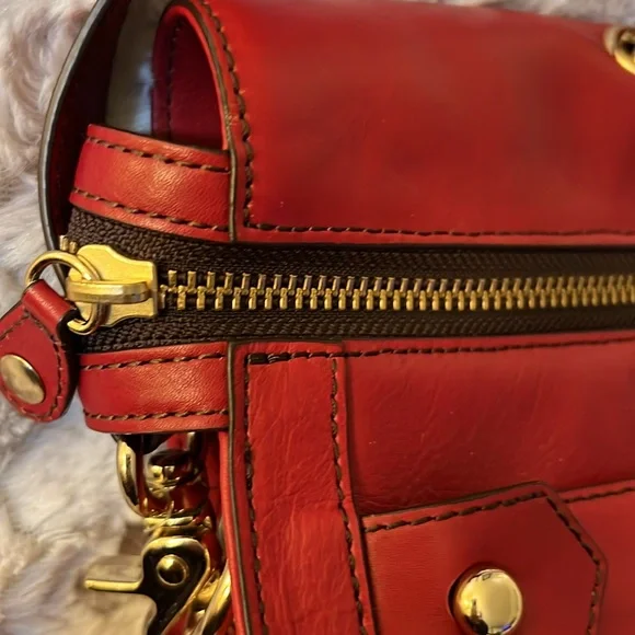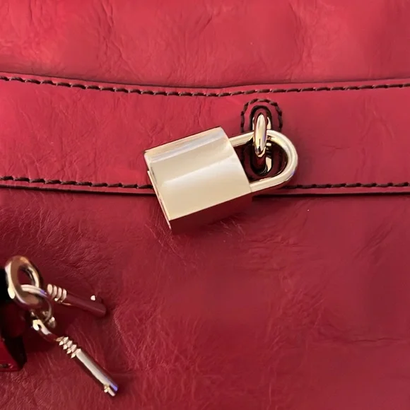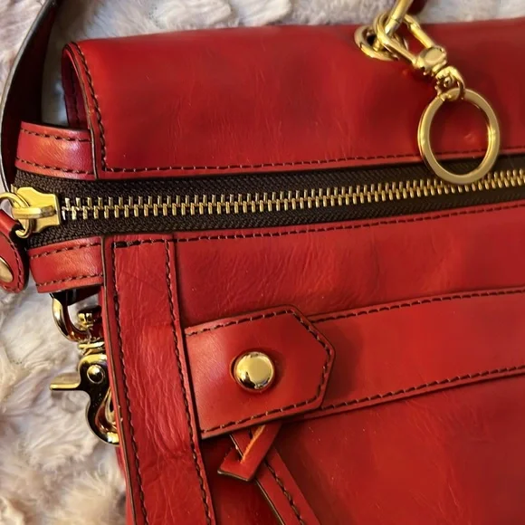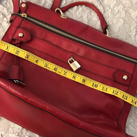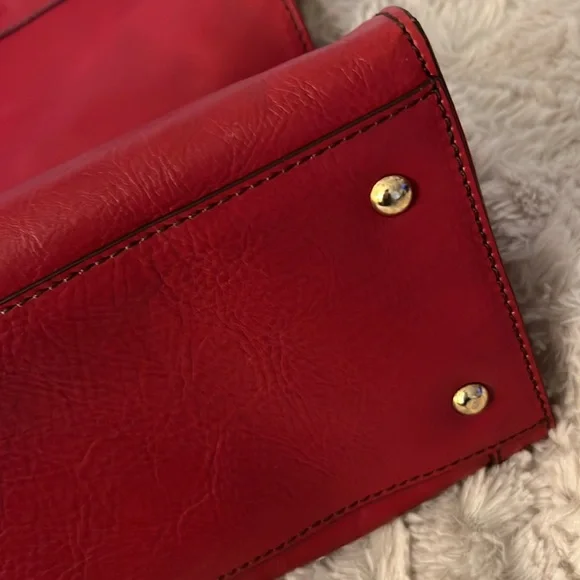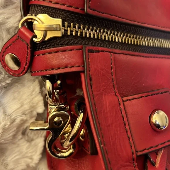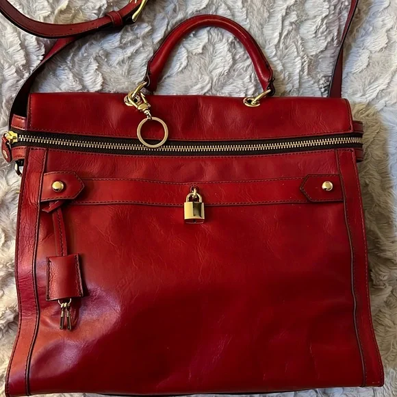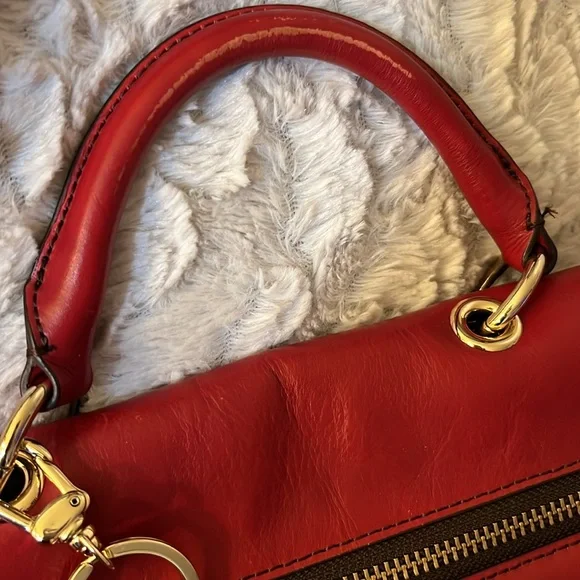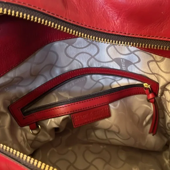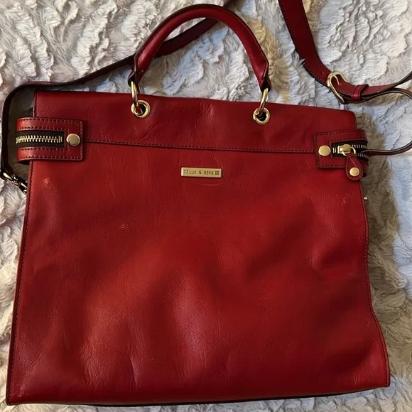 This bag is stunning. Beautiful red color. Can be carried as a tote or crossbody. In great preloved condition. Top quality genuine leather.